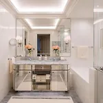 244 rum på det lyxiga Four Seasons Hotel George V i Paris har balkong och klädloge. Några av rummen har en enastående inredning med soffa. Dessutom finns det minibar och te-/kaffebryggare samt privat kassaskåp. I badrummen finns ett badkar, en separat toalett och en dusch, tillsammans med bekvämligheter som badlakan och tofflor.